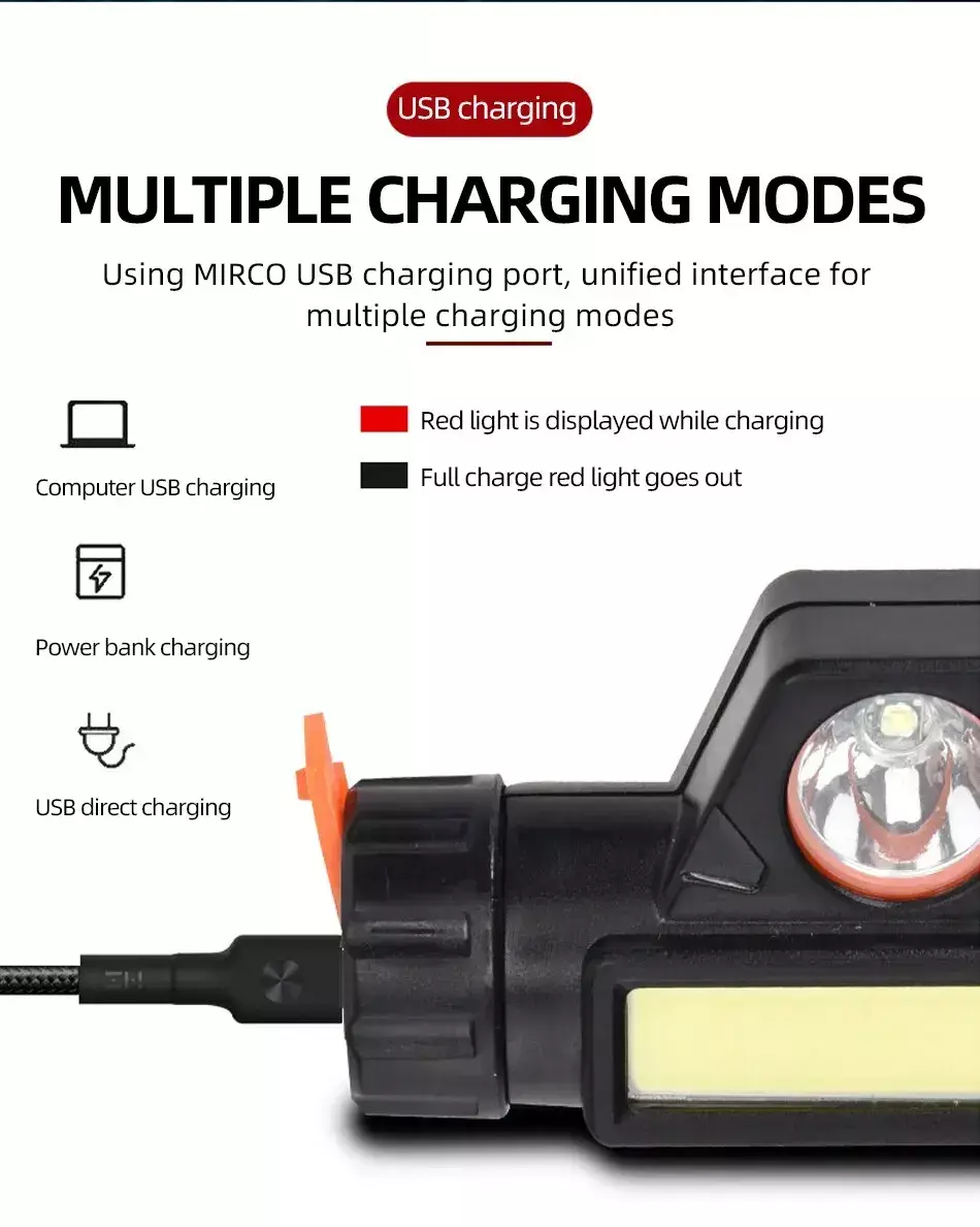 2 botões independentes para 6 modos de luz (luz alta COB-luz baixa COB-estroboscópio COB-luz alta XPE-luz baixa XPE-estroboscópio XPE) para atender às suas diferentes necessidades.